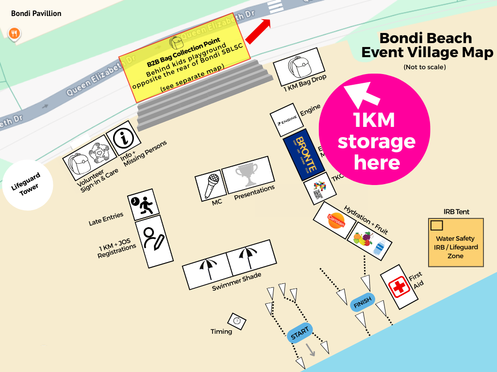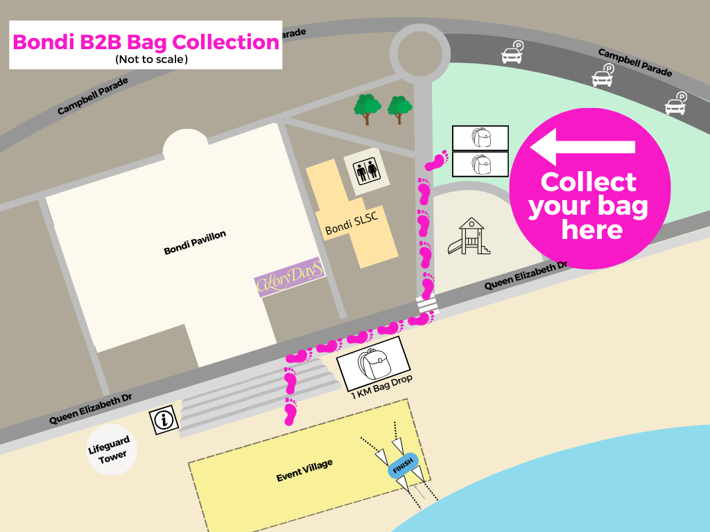 Refer to the Bondi B2B Bag Collection map for details of where you can collect your bag at Bondi.